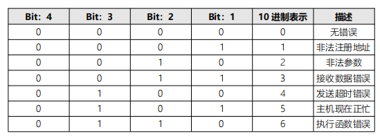 關于Bit:1...4的錯誤碼說明: