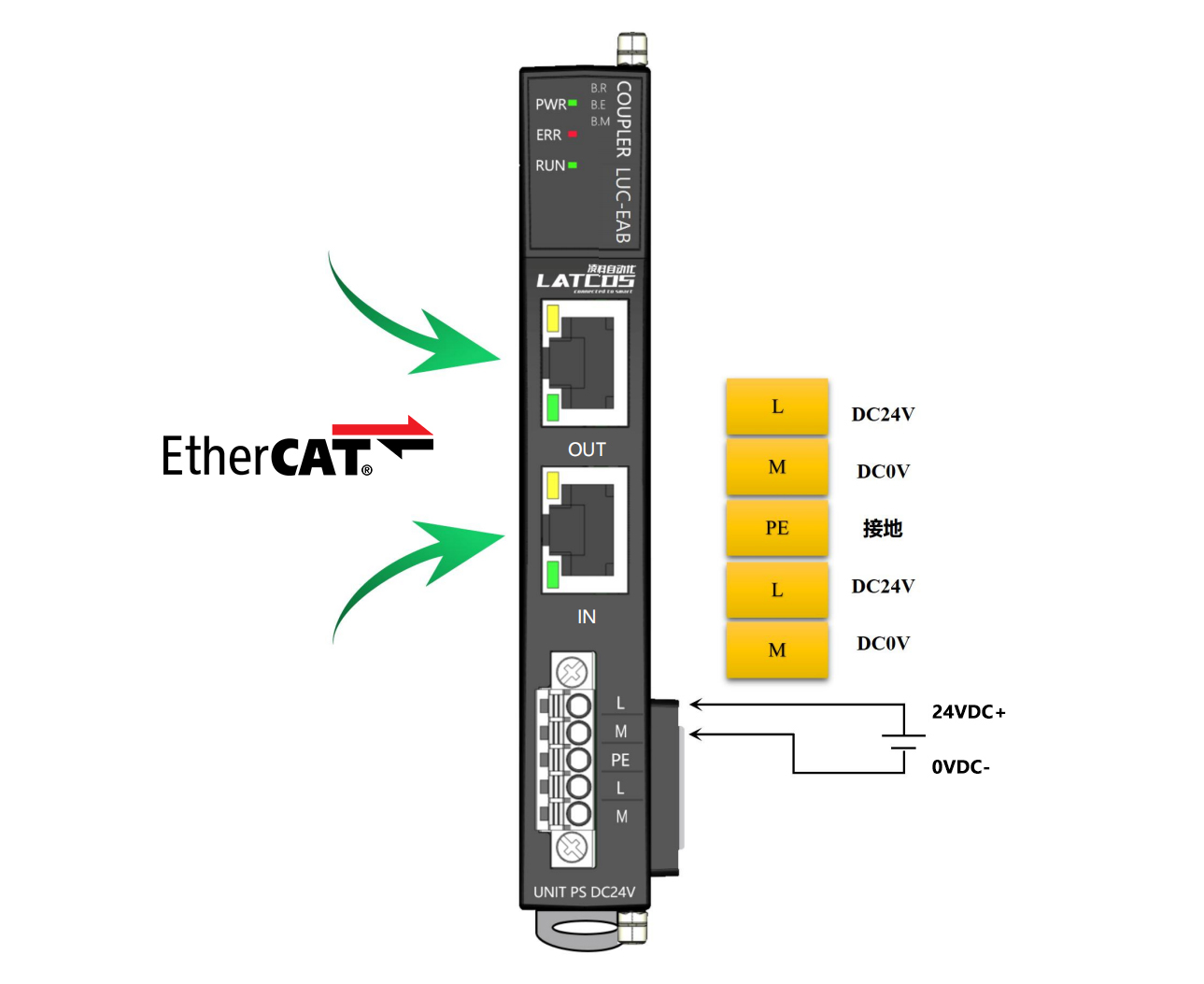 薄片型多功能分布式I/O,ETHERCAT耦合器,2xRJ45,可級聯,可擴展32個模塊,24VDC