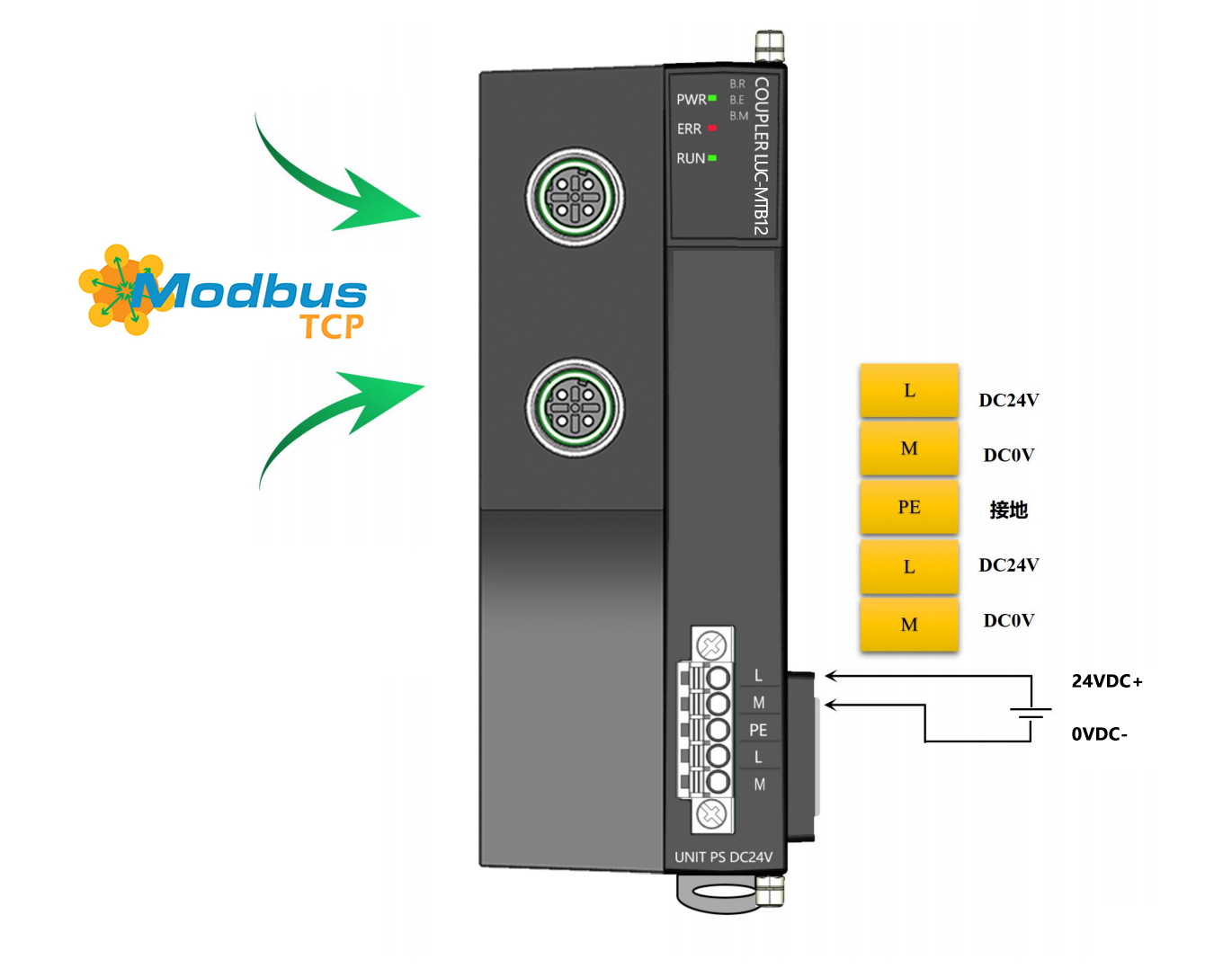 薄片型多功能分布式I/O,MODBUS TCP耦合器,2xM12,可級(jí)聯(lián),可擴(kuò)展32個(gè)模塊,24VDC