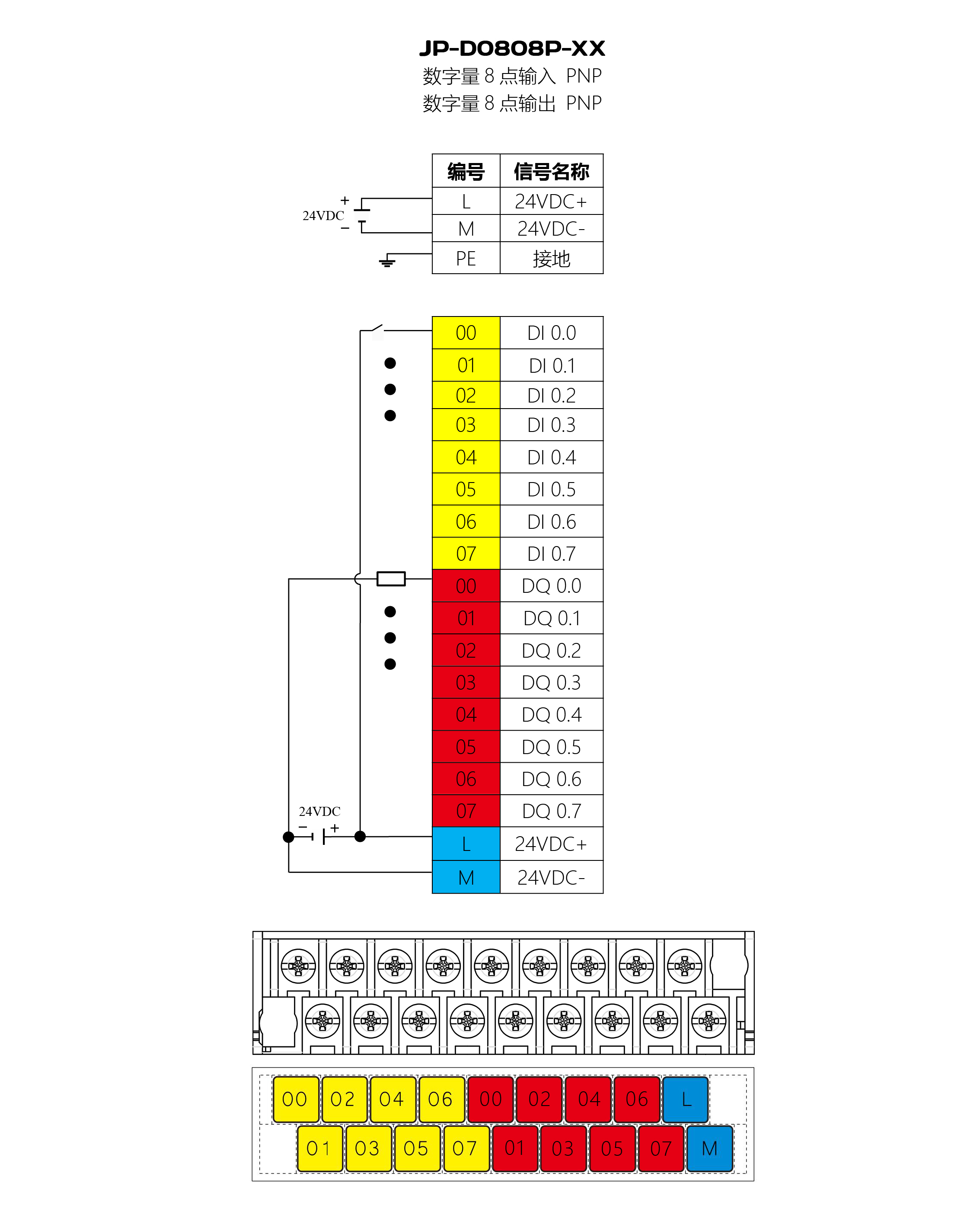 柵欄式螺釘分布式I/O,雙網口,可級聯,支持EtherCAT協議,8DI_PNP,8DO_PNP,0.5A,24VDC
