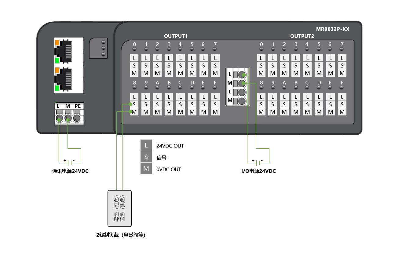 面板式快接線分布式I/O,CC-Link IE FieldBasic通訊,2xRJ45,可級(jí)聯(lián);數(shù)字量32出 PNP,24VDC,0.5A,E-con連接器;導(dǎo)軌安裝&打孔安裝(下單時(shí)需備注)