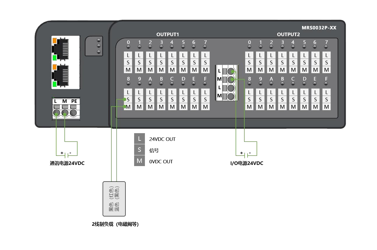 面板式快接線分布式I/O,CC-Link IE FiledBasic通訊,2xRJ45,可級聯(lián);數(shù)字量32出 PNP,24VDC,0.5A,歐式彈簧端子;導(dǎo)軌安裝&打孔安裝(下單時需備注)